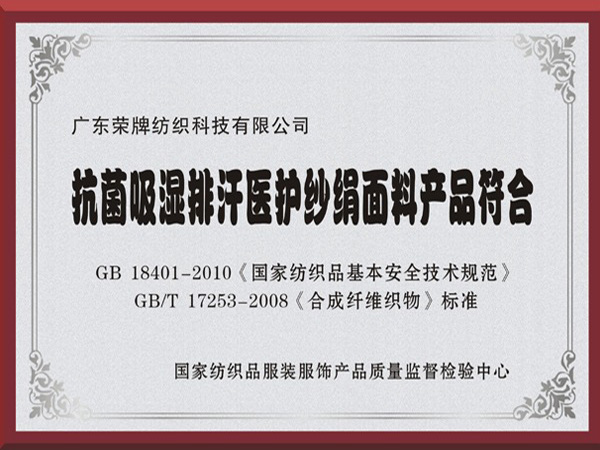 ks凯时抗菌吸湿排汗医护纱绢面料产品符合国家标准